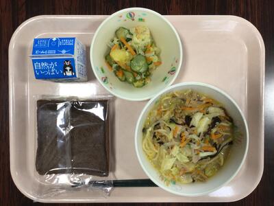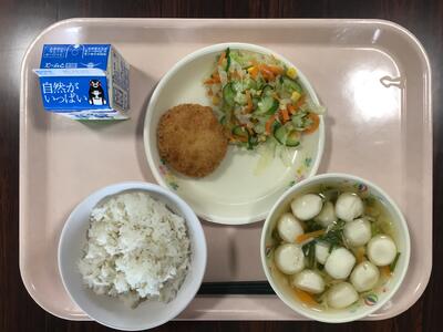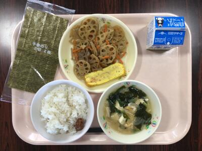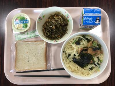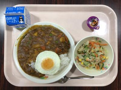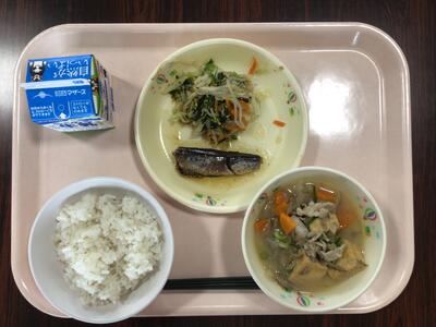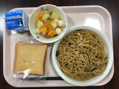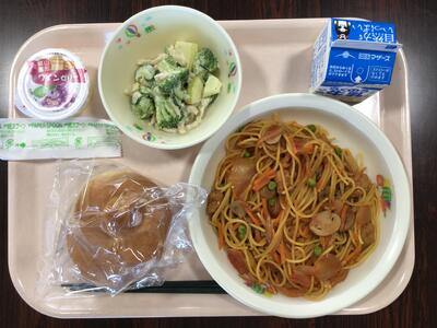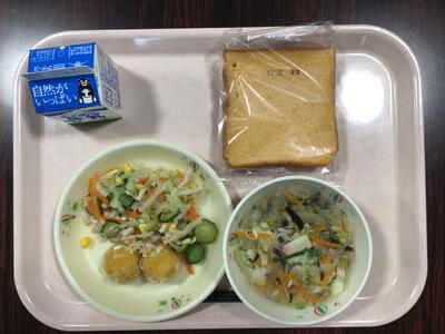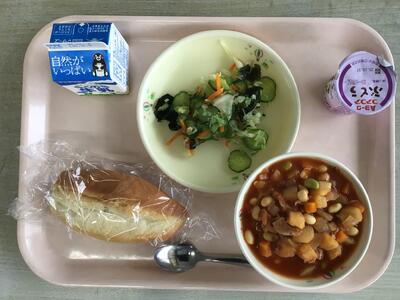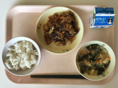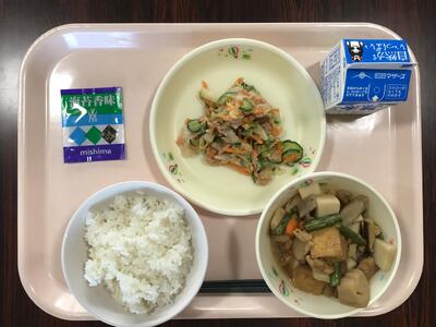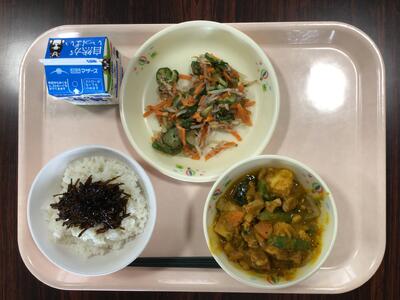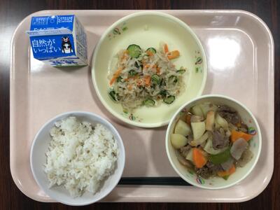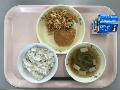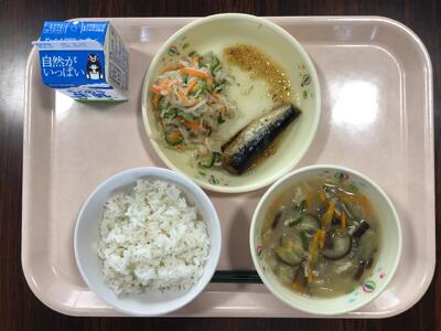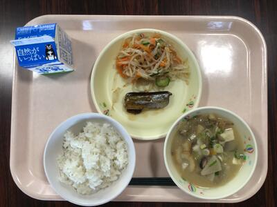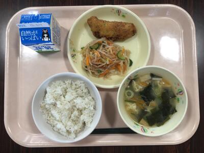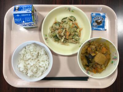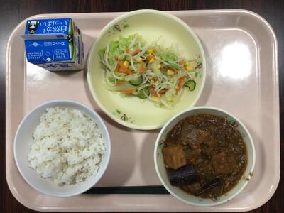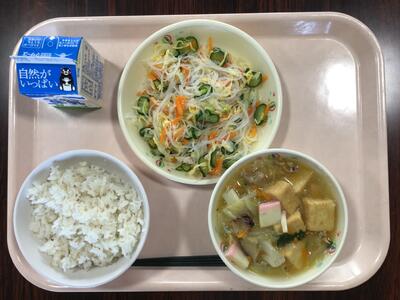 今日は、麦ごはん、なすのマーボー煮、糸かまぼこのサラダ、牛乳でした。