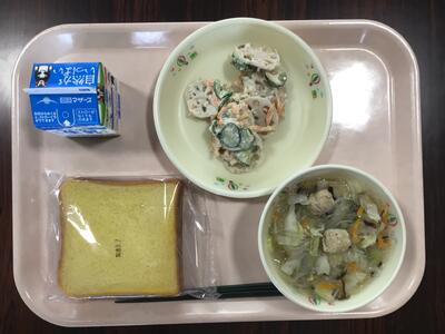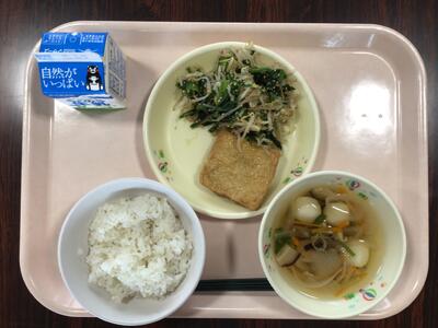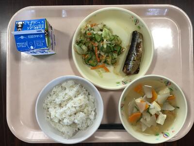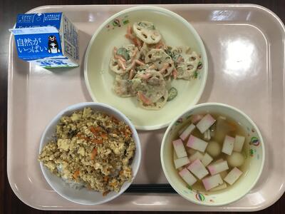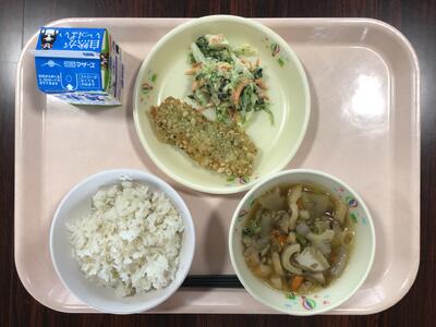 今日は、麦ごはん、おでん、甘酢和え、牛乳でした。