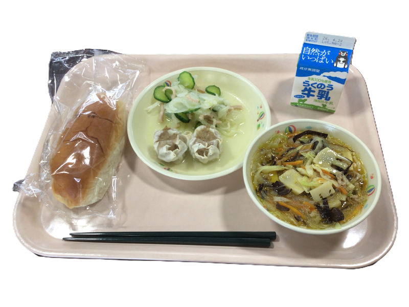 今日の献立:ミルクパン 牛乳 新タマネギのマリネ タイピーエン シューマイ