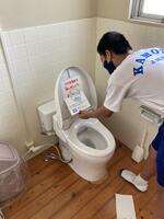 ◯夏休みの間に、「ウォーク(代表者:本田あゆみ様)」より、トイレの背もたれに貼る除菌シートを寄贈していただきました。感染症対策として、大切に使わせていただきます。