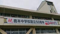 ◯鹿本中学校創立50周年式典実行委員会の皆さんの協力をいただき、50周年記念横断幕を3階側面に設置しました。ご来校の際には、ぜひご覧ください。(8/26)
