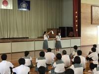 〇6月の「心のきずなを深める月間」の取組の1つとして、全校集会を行いました。「相手を思いやる言動」について考え、クラスに戻り人権標語を作成しました。