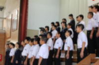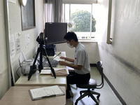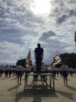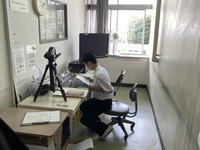 〇2学期が始まりました。放送による始業式を行いました。各学年の代表(1年生:古閑君,2年生:福島君,3年生:西村君)が2学期の目標を発表しました。(8/24)