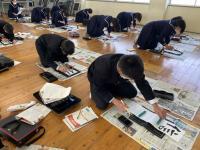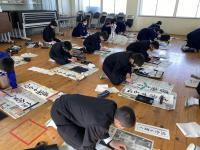 〇1/12に予定していた1・2年生の書初め大会は、体育館での一斉授業行わず、各クラス毎に会議室で実施しました。(1/14)