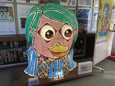 〇鹿本町商工会より、はりぼてでできた「アマビエ」を借用しています。(新聞でも紹介されました)青森のねぶた祭りのねぶたの手法で作られているそうです。学校玄関に設置しております。是非ご覧ください。(10/26)