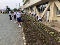 〇休校中に育てていた花苗を、学級園に植え替えました。生徒会3本柱の花いっぱいの鹿本中を目指して、生徒一人一人がお世話をしていきます。(6/15,16,17)