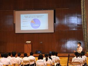 本日、天草市水産振興課の方に来ていただき「天草市の養殖業について」の出前授業が1年生を対象に行われました。