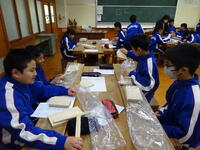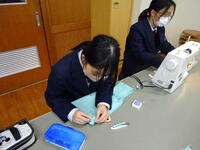 1年生:技術(木工)の本棚つくり、2年生:家庭科(被服)のエコバックつくりの様子です。タブレットで手順の確認をしたり、先生方や友達と意見を交わしたりしながら意欲的に作成しています。どのような仕上がりになるのか楽しみです。