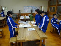 朝から生徒朝会・はぴはぴタイムを行いました。スタートから円陣の隊形です。はじめに2学期の振り返りを行いました。各々の頑張りを認め合う姿が見られました。次に「シンクロゲーム」を行いました。「●●●といえば」でお題を出し、答えが他の班と揃えばポイント加算となるゲームです。より多くシンクロするとポイントも加算されます。はぴはぴタイムは、生徒会の企画・運営で工夫した取組となっています。和やかで互いの意見を大切にしようとする雰囲気で朝から1日をスタートできました。準備や片付け等も協力して行っています。