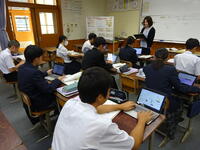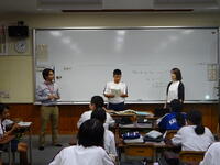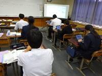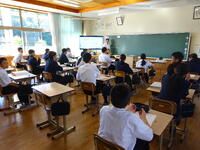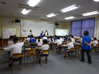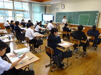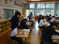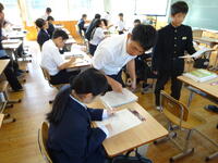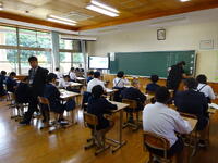 5時間目の授業の様子です。1年生は英語。ウォーミングアップの「誰でしょう=Who is this?」ゲームで盛り上がっていました。2年生は数学。単元テストを真剣に受けていました。3年生は保健体育。ソフトボールで男女混合のチームでしたが場の工夫・ルールの工夫もあり、大声援がグラウンド中に広がっていました。