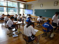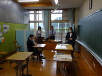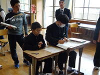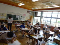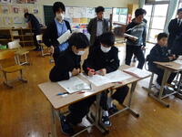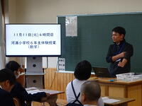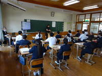 河浦小学校の6年生が中学校での学校生活を体験しました。3時間目は小学校の担任の先生の授業(国語)で4時間目が中学校の数学の授業を体験しました。給食まで食べて離校となります。とても元気で礼儀正しい6年生でした。