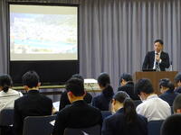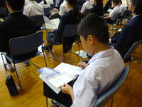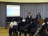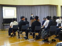 午後から全校生徒を対象に「高校説明会」を実施しました。保護者の皆様にも参加いただきありがとうございました。3年生は昨日共通テストを終え、来月の三者面談で希望する進路を決めていくことになります。2年生にとっては1年後のことになりますが、その時期はあっという間にやってきます。1年生にとっては、「もう卒業後の進路のこと?!」と考えた人も多かったかも知れませんが、2年という月日はすぐに過ぎていきます。今回、高校の先生方や先輩の話を聞いて感じたこと、考えたことがあったと思います。その想いをしっかり家族や友達、先生方とも共有して、いろいろな人の想いも参考にしながら、将来の自分について考えて欲しいと思います。今回、来校いただきました高校の先生方からは、説明以外にも本校卒業生の活躍の様子も聞かせていただきました。ありがとうございました。