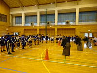 舞台芸術等総合支援事業で「狂言」の学校巡回公演が12月16日(火)に行われます。その事前体験学習(ワークショップ)を行いました。【万作の会】から3名の狂言師の方々に実演と指導をいただきました。本番に向けて、実際の台詞や動きを学び体験することができました。本番では生徒も参加型の公演となります。お時間があられれば、保護者・地域の皆様もご来校いただき、「狂言」の世界を体験いただければと思います。【万作の会ホームページよりhttps://www.mansaku.co.jp/about.html】