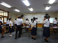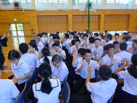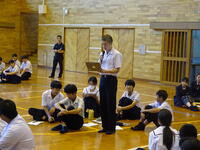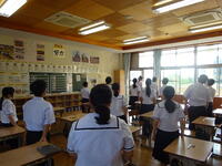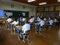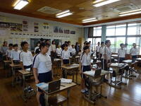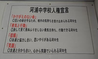 朝の様子です。今日はフッ化物洗口を行いました。また、今週から朝の会で「河浦中学校人権宣言」を代議委員がリードして唱和し、帰りの会で振り返りを行っています。身につけさせたい資質・能力の一つである「共生の心」を育む一環としての取組です。