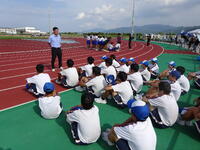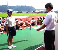 天草郡市中学校駅伝競走大会が行われました。暑さが厳しいレースとなりました。女子は10位で躍進賞をいただきました。昨年度よりも3分ほどタイムが速くなりました。男子は12位で昨年度のタイムよりも1分ほど速くなりました。男女ともアンカーが競技場でデットヒートを繰り広げるなど観ている人を興奮させました。走り終わったあとは、選手・付き添い関係なくそれぞれの走りを労う姿が見られました。3年生を中心にリードしてくれた駅伝チームでしたが素晴らしい走り、態度でした。感動をありがとうございました。応援いただきました保護者の皆様、地域の皆様にも感謝いたします。競技結果は天草市陸上競技協会HPからご覧になれます。
