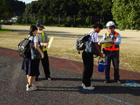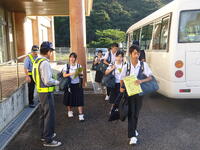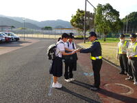 朝の登校にあわせて、牛深警察署・牛深地区防犯協会から自転車盗難被害に関する啓発のチラシと自転車用のダイヤルロック等の配付があり、﨑津駐在所と少年補導員の方々の協力のもと「備え付けの鍵とダイヤルロック等の2重ロック」について啓発活動が行われました。地域の防犯力向上に、中学生としてもできることから取り組んで欲しいと思います。