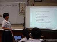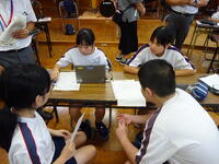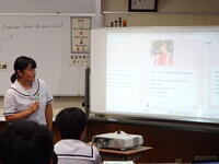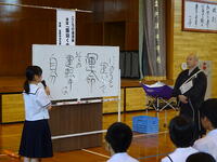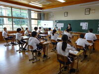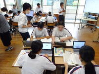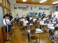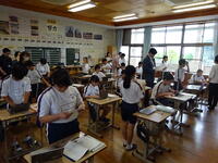 3時間目は英語(3年生・林田先生)の研究授業でした。河浦小学校からも川上校長先生が参観に来てくださいました。「ALTのマシュー先生に興味を持ってもらえるように日本の文化について紹介しよう」というめあてのもと関係代名詞を用いながら表現の工夫に挑戦しました。友達や先生と相談しながら目標達成に向け、活発に活動していました。