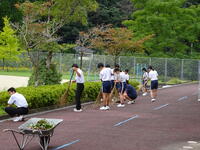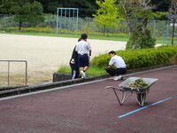 昼休みに生徒会の呼びかけで、定期的に美化ボランティア活動を行っています。落ち葉集めや草引きなど、有志による活動です。毎回多くの生徒が参加しています。