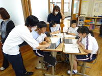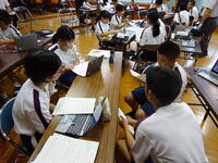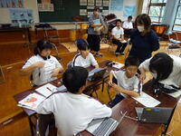 3時間目、1年生で国語の研究授業を行いました。河浦小学校から河原先生、牛深中学校から堺先生にも参観いただきました。「説明的文章の内容を読み取り、観点ごとにまとめる」という授業内容でした。元気なあいさつからスタートし、班でのまとめの作業も協力し意見を出し合いながら進めることができました。最後は各班でまとめた内容を全体で共有しました。