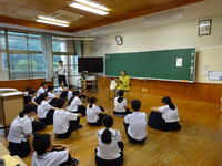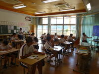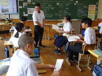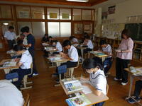今日は朝から1・2年生は読み聞かせがありました。主任児童委員の池田さんと橋本先生にお世話になりました。ありがとうございました。3年生は実力テストのため朝自習はテスト勉強をしていました。授業の様子は、1年生国語、2年生体育です。
