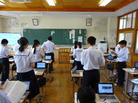 22日に鶴田先生が自立活動、本日(24日)、野島先生が社会科の研究授業を行いました。日頃の授業を他の先生方にも参加してもらい、授業力向上を目指した取組を行っているところです。生徒たちは真剣に取り組んでいます。分かる・もっとやってみたいと思える授業を作り出すために今後も職員で研究に取り組んでいきます。