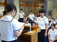 10月10日(金)の合唱コンクール(学習発表会)に向けて各学級、練習に取り組んでいます。朝や昼休み、帰りの会後のわずかな時間を大切に確保しながらの取組です。2年生はシンボルの旗を作っているようでした。本番まで残りわずかですが、精一杯取り組みます。保護者や地域の皆様にも聴きに来ていただけるとありがたいです。