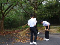 休み明けでしたが、朝から生徒会主催のボランティア(かわンティア)を行っていました。通路の草取りや落ち葉集め、自転車小屋横の落ち葉掃きなど、短時間ではありますが有志の皆さんで学校を綺麗にしてくれています。