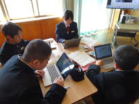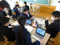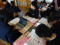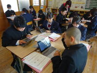 1年生は家庭科の調理実習に向けて事前の学習を進めていました。2年生は技術(情報)でSNSの利用について討論会を行っていました。