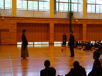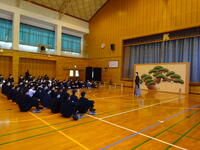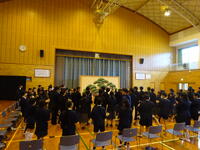朝から生徒朝会・はぴはぴタイムを行いました。スタートから円陣の隊形です。はじめに2学期の振り返りを行いました。各々の頑張りを認め合う姿が見られました。次に「シンクロゲーム」を行いました。「●●●といえば」でお題を出し、答えが他の班と揃えばポイント加算となるゲームです。より多くシンクロするとポイントも加算されます。はぴはぴタイムは、生徒会の企画・運営で工夫した取組となっています。和やかで互いの意見を大切にしようとする雰囲気で朝から1日をスタートできました。準備や片付け等も協力して行っています。