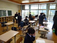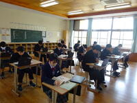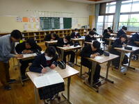 昨年度より朝の会や朝自習の時間を15分短縮して、8時30分に1時間目の授業をスタートするようにしました。朝の準備の様子と標準学力テストの様子です。
