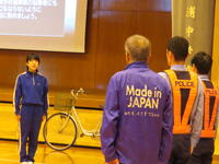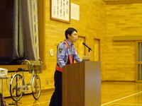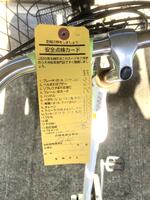 先日の交通教室の日が雨で自転車通学生の自転車が少なかったこともあり、本日改めて河浦輪業から自転車点検を実施していただきました。乗車する上での点検項目(ベル・ブレーキ・反射鏡)はすべての車両で「合格」をいただきました。TSマークや保険に関する内容については各家庭でも再確認をお願いします。