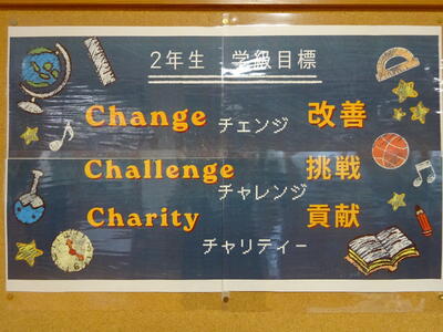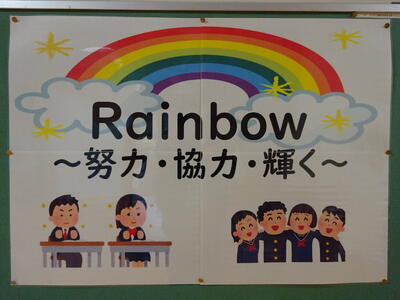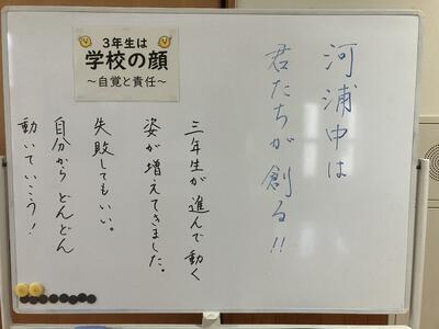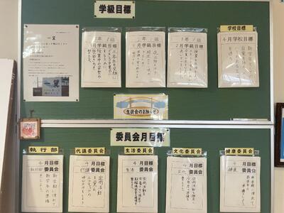 各学年には様々な掲示が見られます。先生方からもメッセージが伝えられ、ともに進む方向性を確認するためのものがあります。生徒会活動の様子も毎月確実に伝えられています。