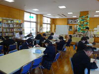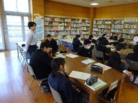 3時間目、1年生に対象で図書に関するオリエンテーションを行いました。図書室利用に関する内容が主でした。
