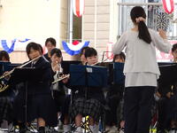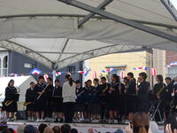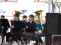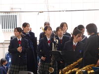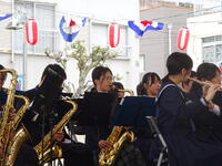 牛深ハイヤ祭りで吹奏楽部が演奏を披露しました。牛深中・牛深東中・牛深高校との合同チームでした。昨年までは、牛深ハイヤ通りをパレードする形式でしたが、今年度は天草市役所牛深支所横の特設ステージで4曲を堂々と披露することができました。送迎や応援等お世話になりました。