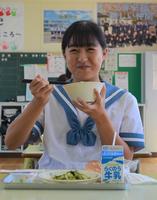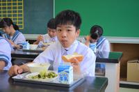 本日の献立は、麦ご飯、牛乳、呉汁、なすのピリ辛炒め、チーズでした。10月は「食品ロス月間」です。本校でも給食はできるだけ残さないように、みんなで協力して食べきっています。