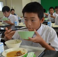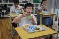 本日の献立は、麦ご飯、牛乳、タイピーエン、ジャーマンポテト、納豆でした。納豆は明日7月10日(納豆の日)に合わせて、和水町内に製造工場のある「丸美屋」さんから無償で提供していただいたものです。「丸美屋」さんには、地域の小学校で大豆作りや豆腐の手作り体験をしていただいています。みんなで感謝していただきました。ありがとうございます。