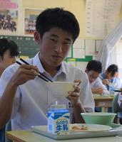 本日の献立は、ミルクパン、牛乳、焼きビーフン、パインサラダでした。毎日真ニューに入っている牛乳。今日の「給食ぱくぱくだより」には、<なぜ、毎日牛乳があるの?>という疑問に対する答えが書かれていました。骨や歯をつくるカルシウムは成長期にはとても必要で、それをたくさん含んでいるのが牛乳です。牛乳でカルシウムの「こつこつ貯金」をするためだそうです。