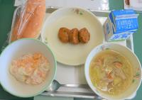 本日の献立は、チーズパン、牛乳、肉団子と白菜のスープ、ジャーマンポテト、一食いりこでした。今日は少し寒かったので、肉団子と白菜のスープでお腹も心も体も温まりました。