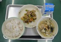 本日の献立は、麦ご飯、牛乳、中華五目スープ、豚肉のキムチ炒めでした。先週、写生大会で給食がなかった10月2日は、10と2のごろあわせで豆腐の日でした。小学生のときに、豆乳とにがりを使って、手作りの豆腐を作った人もいると思います。今週末は3連休です。豆腐作りにチャレンジしてみませんか。