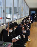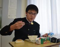 1,2年生も3年生の合格を祈願してトンカツを「ガブリ」と食べました。