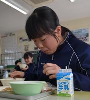 本日の献立は、麦ご飯、牛乳、豚汁、ひじきの炒り煮、納豆でした。納豆は、和水町がいつも大豆の学習でお世話になっている「丸美屋」さんの納豆です。今日の熊日新聞には、小学3年生がめぐり棒を使って大豆を脱穀する記事が掲載されていました。丸美屋の福永さんがボランティアで指導してくださるおかげで、子ども達は生きた学習ができています。