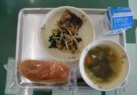 本日の献立は、麦ご飯、ポトフ、魚の梅焼き、納豆、牛乳でした。1年生の給食を訪問しましたが、以前よりも準備も食べるスピードも随分と速くなりました。