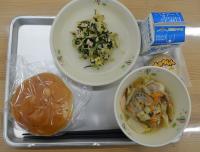 本日の献立は、米粉入りかぼちゃぱん、牛乳、豆乳クリームスパゲティ、冬野菜サラダでした。今日は入試の関係で、3年生は給食なしで下校しました。きっと残念だったと思います。今日も美味しい給食をありがとうございました。