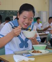 本日の献立は、食パン、牛乳、米粉麺スープ、レバーの甘辛煮、ブルーベリージャムでした。レバーは、亜鉛という栄養素を含む食べ物で、それは食べ物を美味しく感じるための舌の健康に役立っているとのことです。