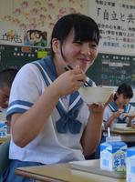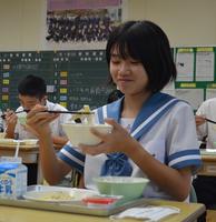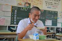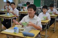 本日の献立は、麦ご飯、牛乳、タイピーエン、ジャーマンポテト、納豆でした。納豆は明日7月10日(納豆の日)に合わせて、和水町内に製造工場のある「丸美屋」さんから無償で提供していただいたものです。「丸美屋」さんには、地域の小学校で大豆作りや豆腐の手作り体験をしていただいています。みんなで感謝していただきました。ありがとうございます。