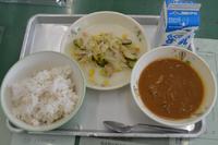 本日の献立は、麦ご飯、牛乳、ビーフカレー、こんにゃくサラダでした。カレーは給食のメニューの中でも、昔も今もとても人気があります。今日も美味しくいただきました。