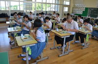 本日の献立は、麦ご飯、呉汁、ごぼうの金平、ひじきのり佃煮、牛乳でした。今日は学校評議員の方も一緒に給食を食べられました。「美味しかった」と言われていました。
