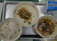 今日の献立は、麦ご飯、牛乳、五目煮、春雨とひき肉の炒め物でした。今日の「給食ぱくぱくだより」には、「カフェイン」のことが記載されていました。「カフェイン」は、コーラ、コーヒー、緑茶、紅茶などの飲み物のほか、チョコレートや抹茶入りのお菓子にも含まれています。「カフェイン」は、脳を刺激して目覚めさせる作用があります。しかし、とりすぎると、眠れなくなったり、不安な気持ちになったりして、体に悪い影響を及ぼすそうです。取り過ぎに注意しましょう。