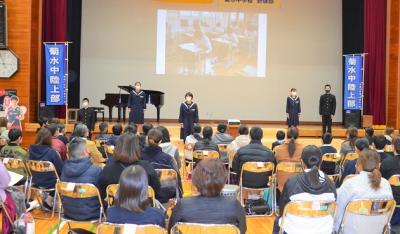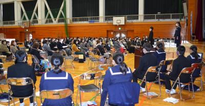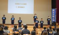 2月5日(金)、生徒会が中心となって、新入生説明会を実施しました。今年は、例年と形をかえ、体験学習は12月に実施しました。このときは、1年生が中心になって小学生のサポートをしましたが、今回は生徒会を中心に2年生全体で説明会を考えました。中学校での生活やきまり、部活動等について、とてもわかりやすくしかも堂々と各自が発表できました。三年生から伝統の襷を受け継ぎ、2年生が学校の中心となって活躍する姿をとてもうれしく思います。