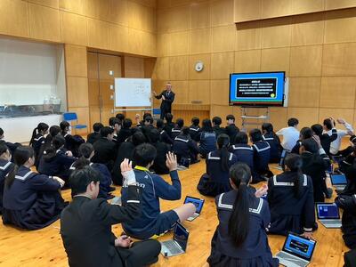 本日、大熊本証券より4名の講師の方々をお迎えして、3年生を対象に「投資」を中心とした金融教育が行われました。